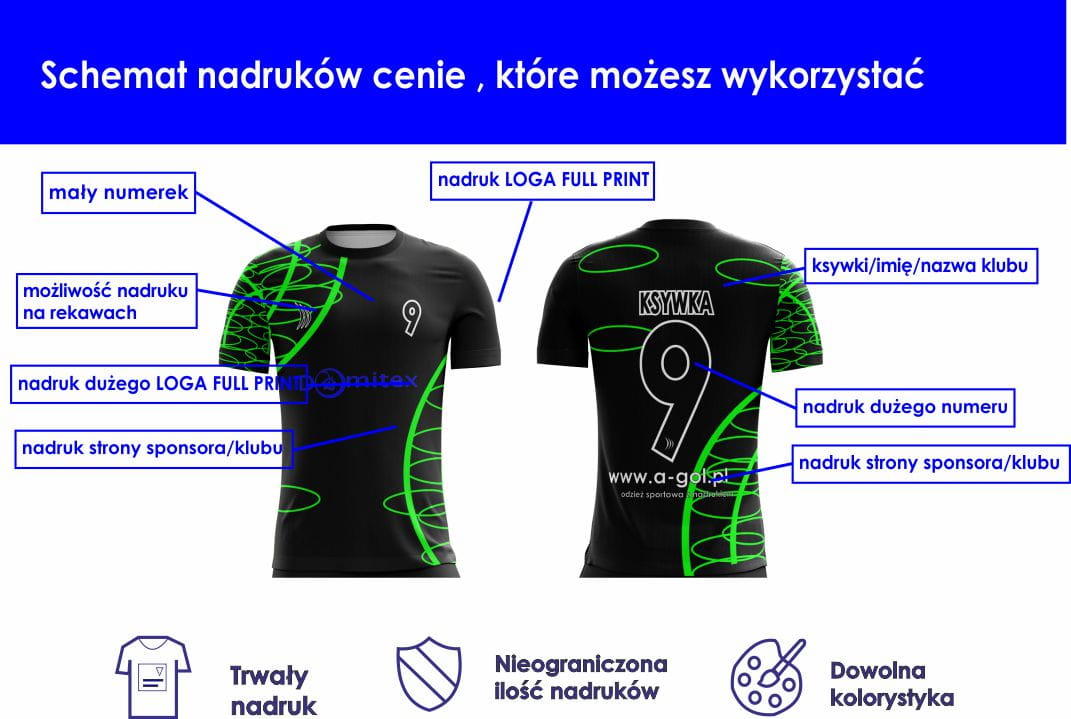 Koszulki piłkarskie SUBLIMOWANE marki A-GOL z twoim nadrukiem w cenie.